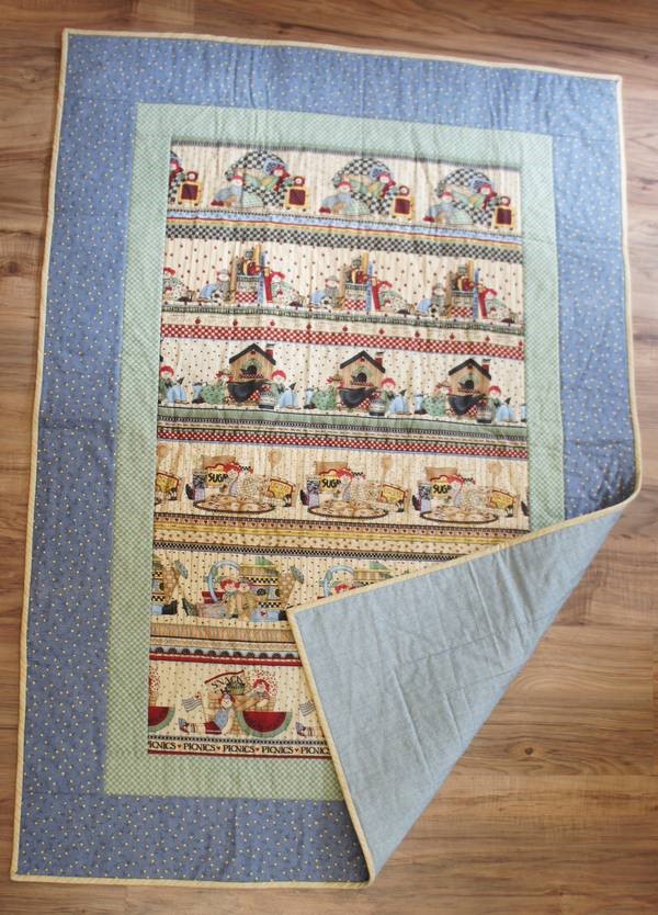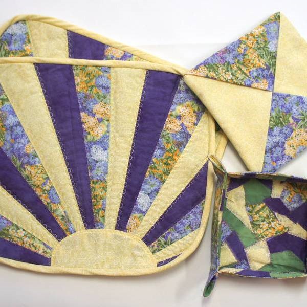 Quilten ist im Englischen etwas breiter definiert als im Deutschen.  Dabei geht es darum Stoffe zusammenzufügen (Patchwork), dann 3 Schichten (gepatchte Vorderseite, Vlies und Rückseite) durch nähen miteinander zu verbinden.  Diese Technik wird für Wanddekoration, Kissen, Decken, Tischwäsche und mehr verwendet.